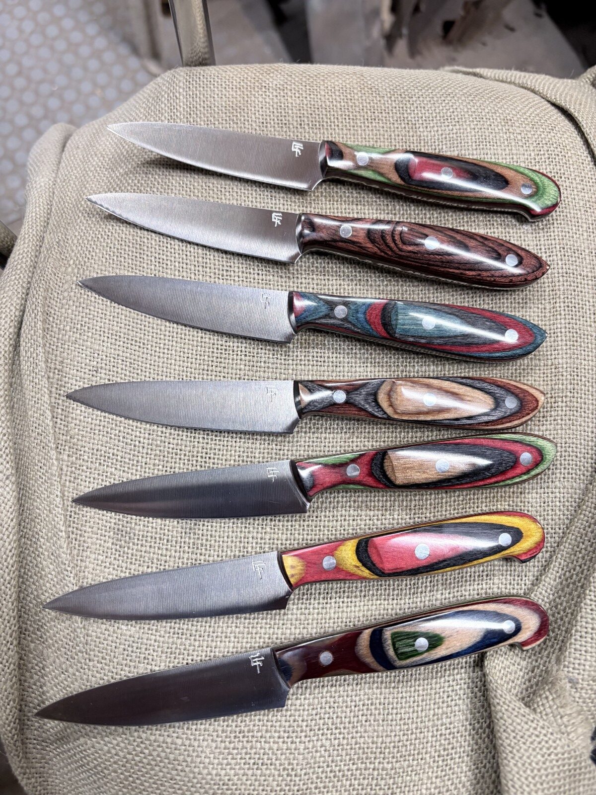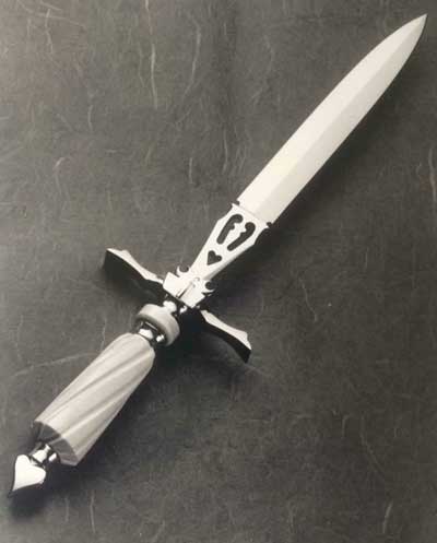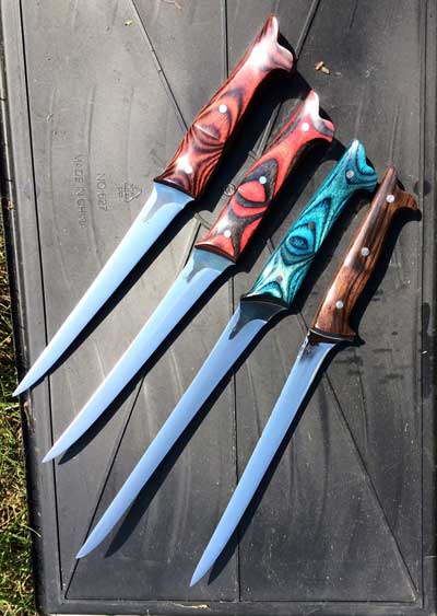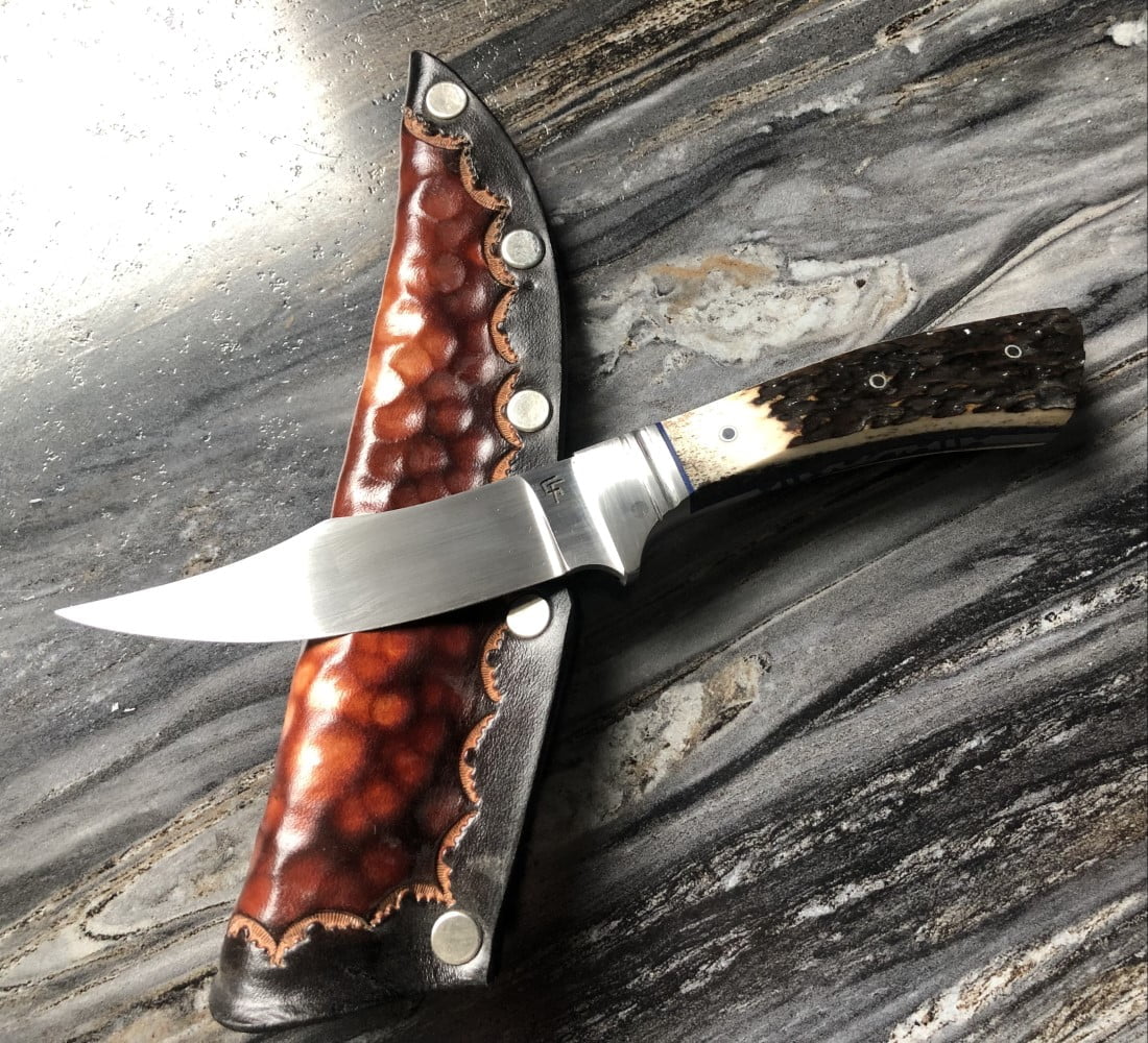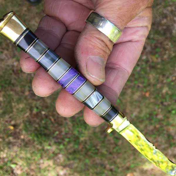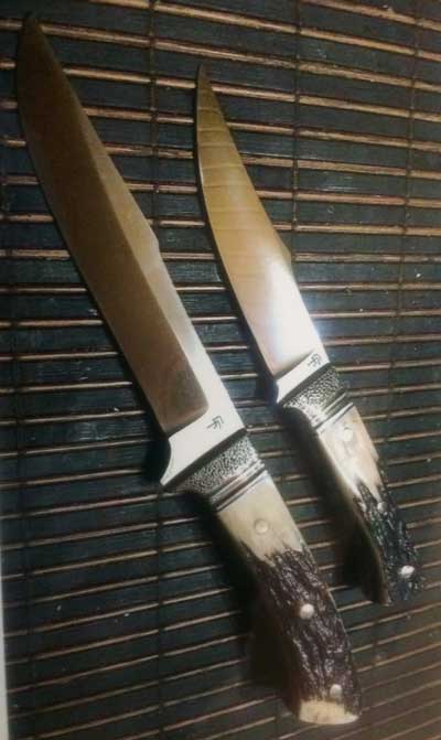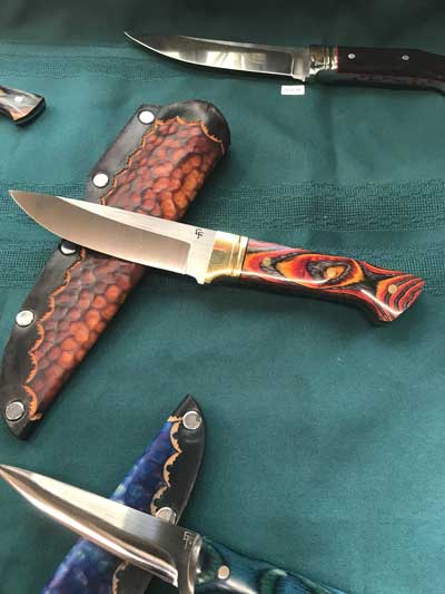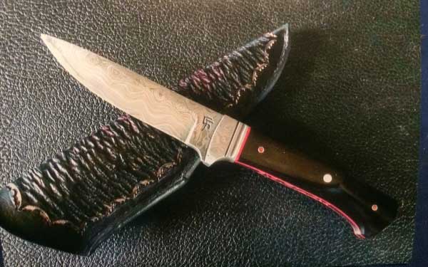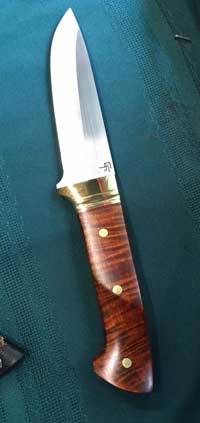 Most knives he makes are one of a kind due to blade shape and handle material – beautiful, while retaining their intended use. Rare woods such as ebony, cocobolo, rosewood, as well as mastodon ivory and pearl, are selected to totally personalize and add to the uniqueness of each piece.