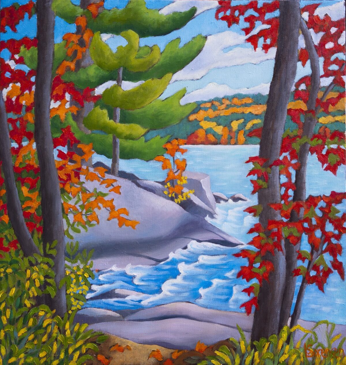 For more than 50 years, Linda has lived close to the land in the Algonquin Park region. In the 1970s, she stepped away from her professional work to raise her family as part of the back-to-the-land movement. When she returned to painting, she established herself as a prolific, award-winning professional artist and has been working full-time for over 25 years.